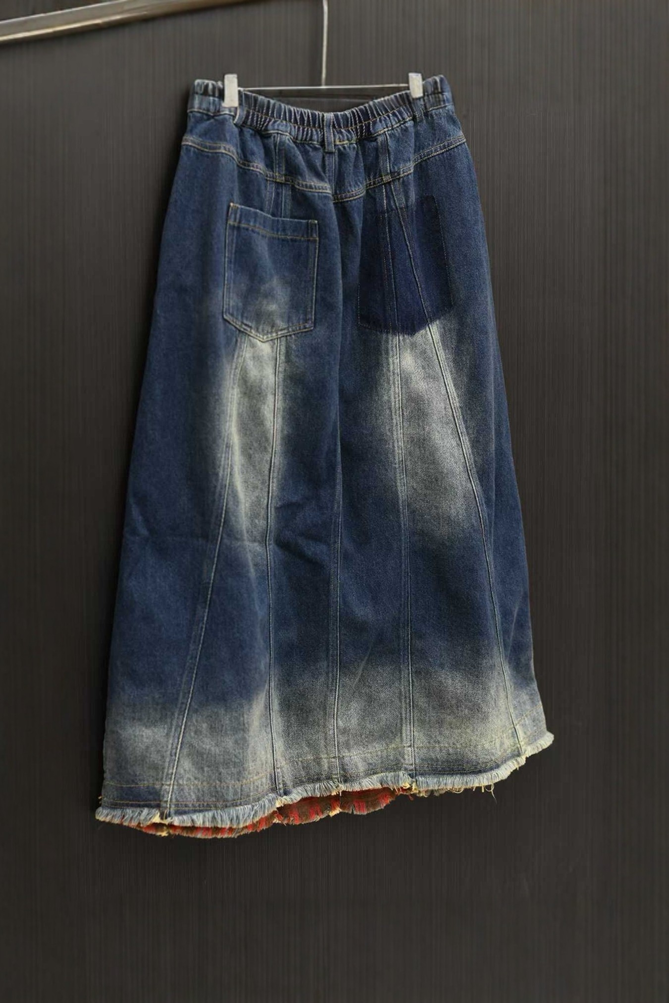 淘宝如眸原创设计松紧腰下摆磨毛牛仔半身裙复古百搭女ZQ51015