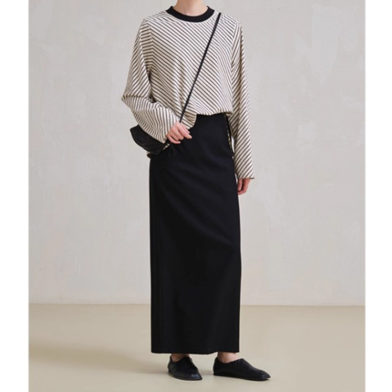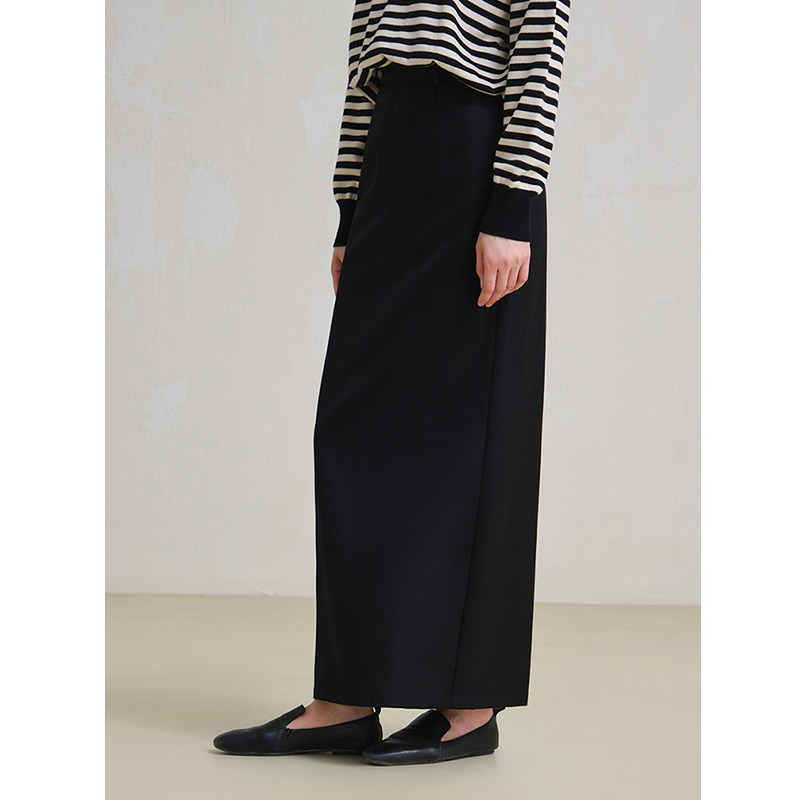 pusumede 知性通勤 高腰西装半身裙女设计感后开叉气质直筒长裙