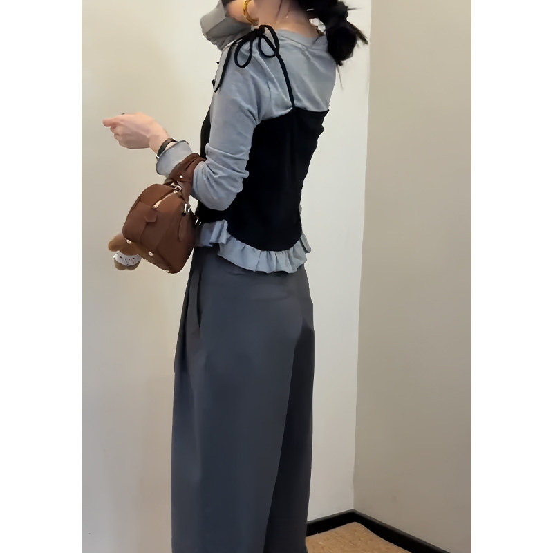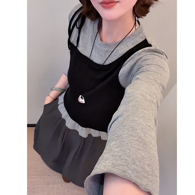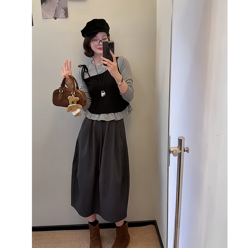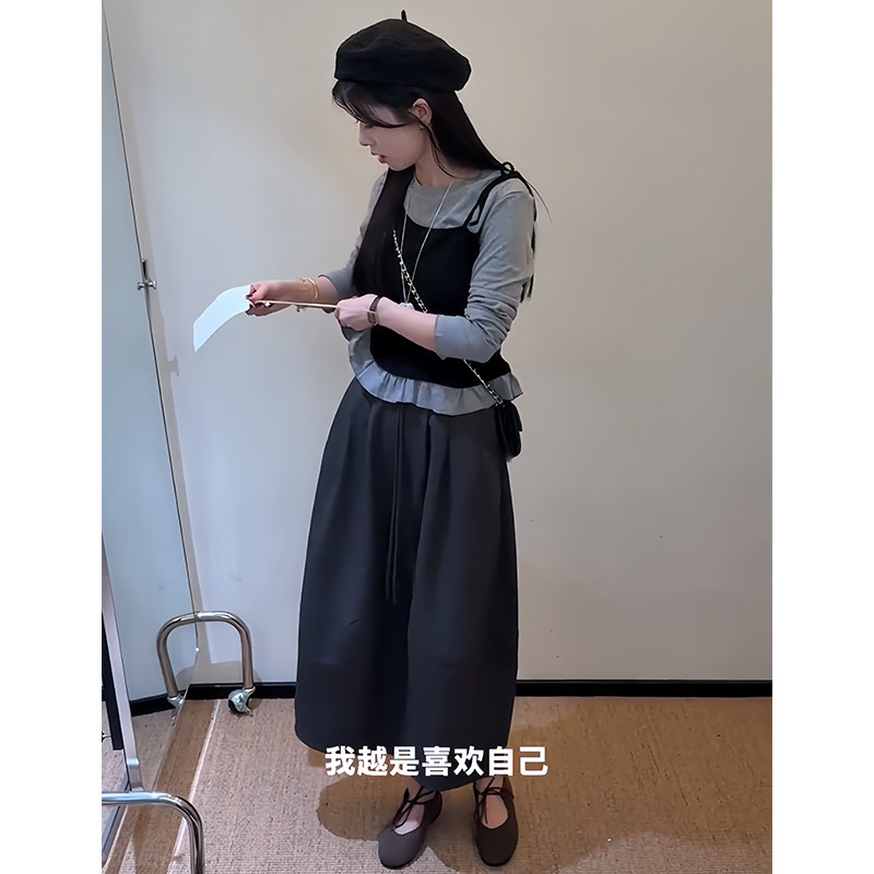淘宝早秋穿搭一整套高级感减龄又a又飒假两件长袖上衣百搭半身裙套装