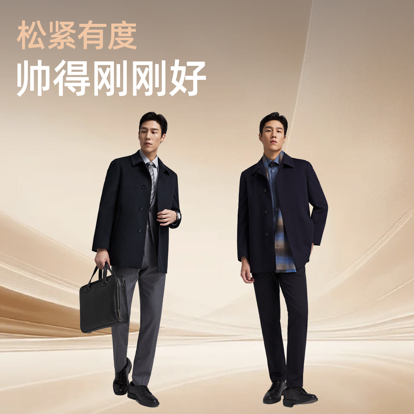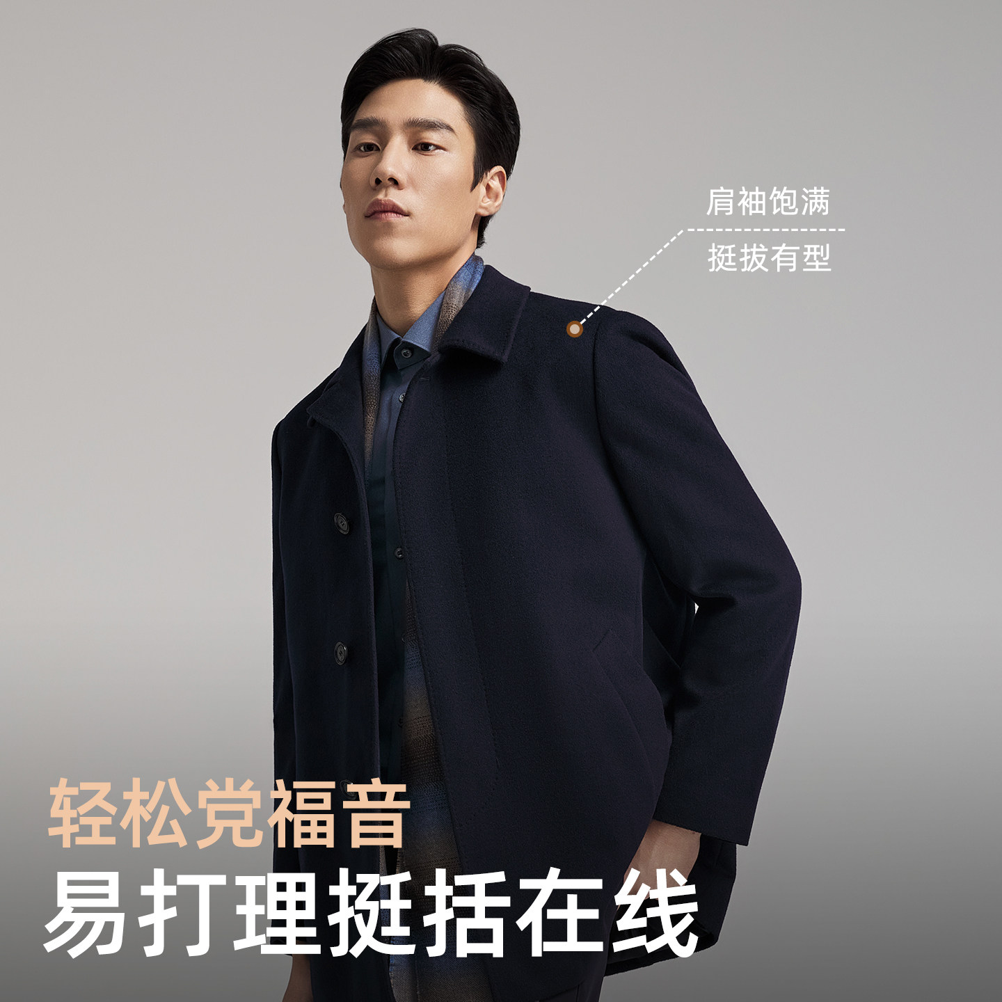 【柴斯特羊绒】报喜鸟秋季新款男士商务正装毛呢大衣外套男款上衣