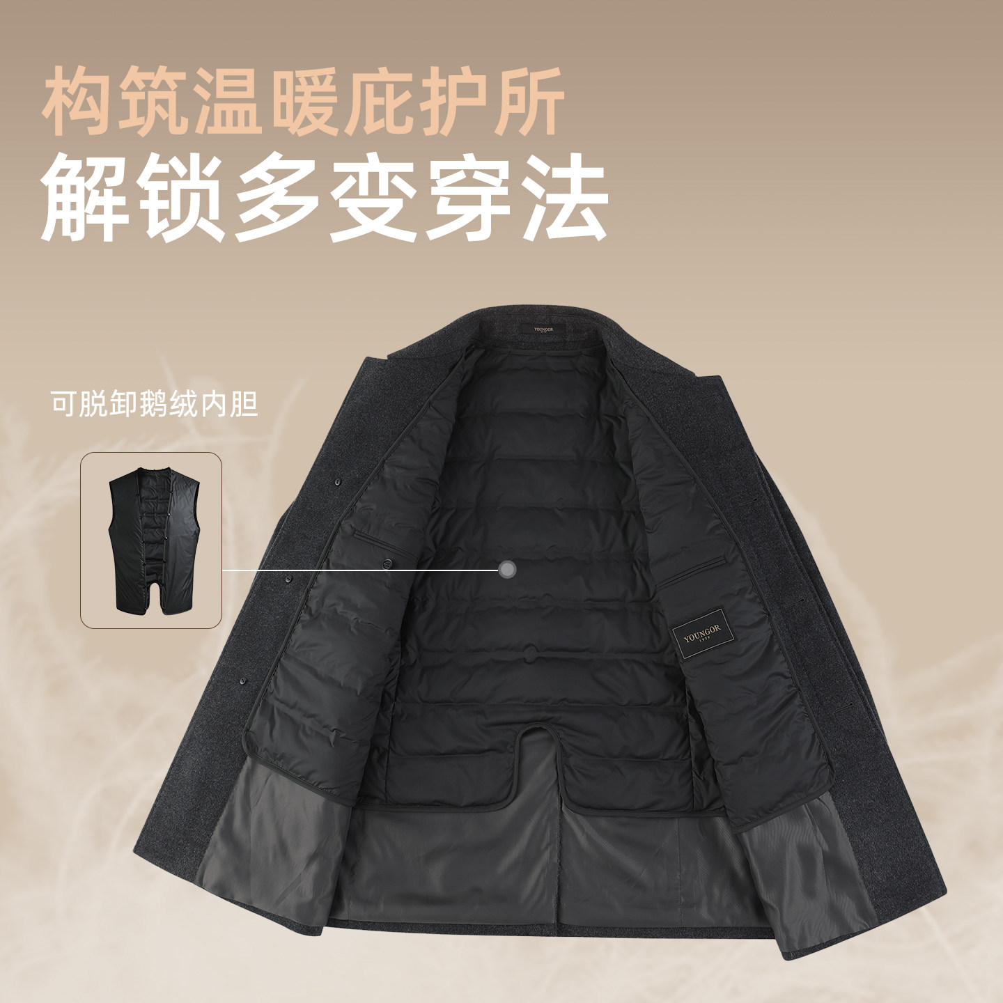 天【羊绒鹅绒】金利来25秋冬新款男士毛呢大衣羽绒内胆三合一外套男