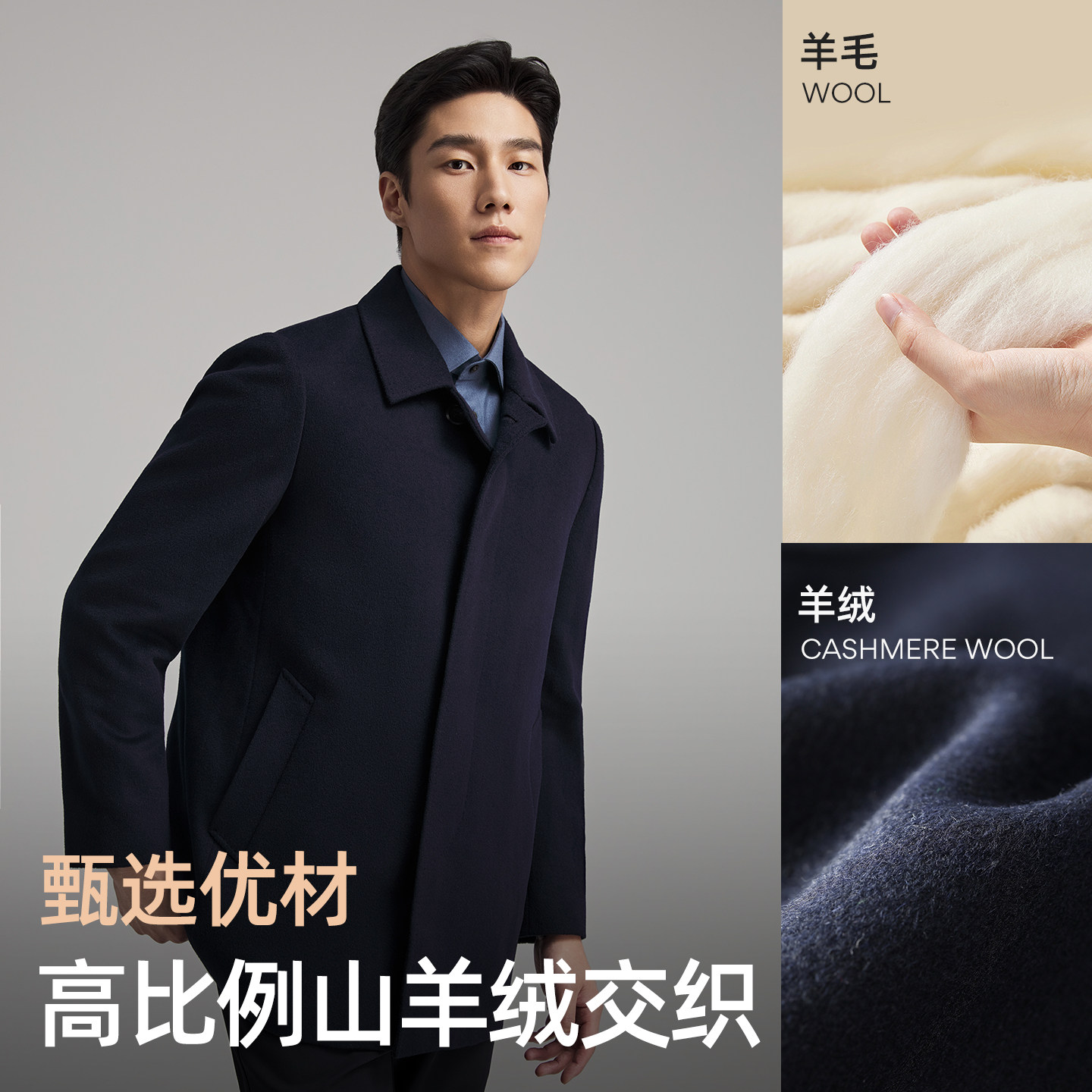 【羊绒羊毛】雅戈尔秋冬季男士西服领商务休闲短款大衣修身外套