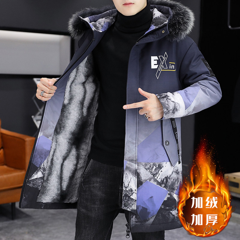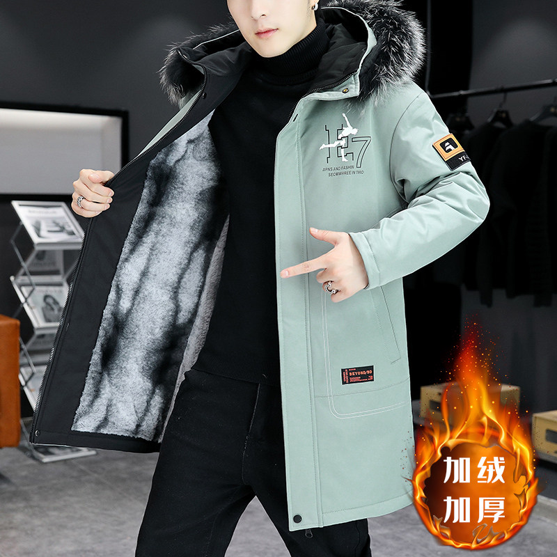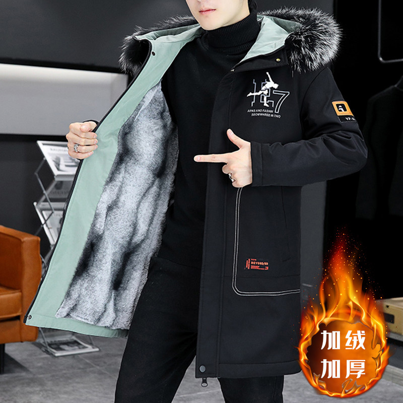 天猫加绒加厚男士外套冲锋衣大衣派克服棉衣秋冬季男装中长款棉服风衣