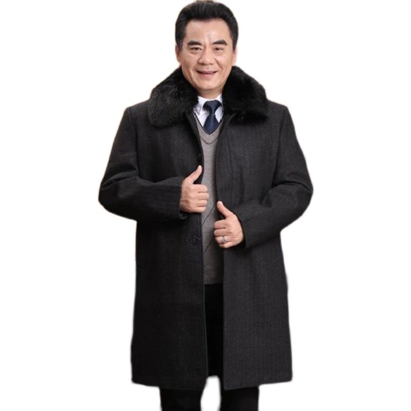 淘老爷车中老年男士羊毛呢大衣可拆加绒内胆爸爸冬装翻领呢子外套厚
