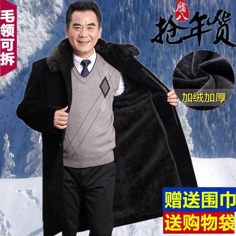 淘宝中老年人男士大衣加绒加厚男装中年冬装爸爸装长款棉衣服爷爷外套