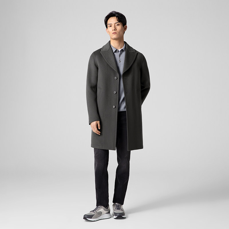 【柴斯特羊绒】报喜鸟秋季新款男士商务正装毛呢大衣外套男款上衣