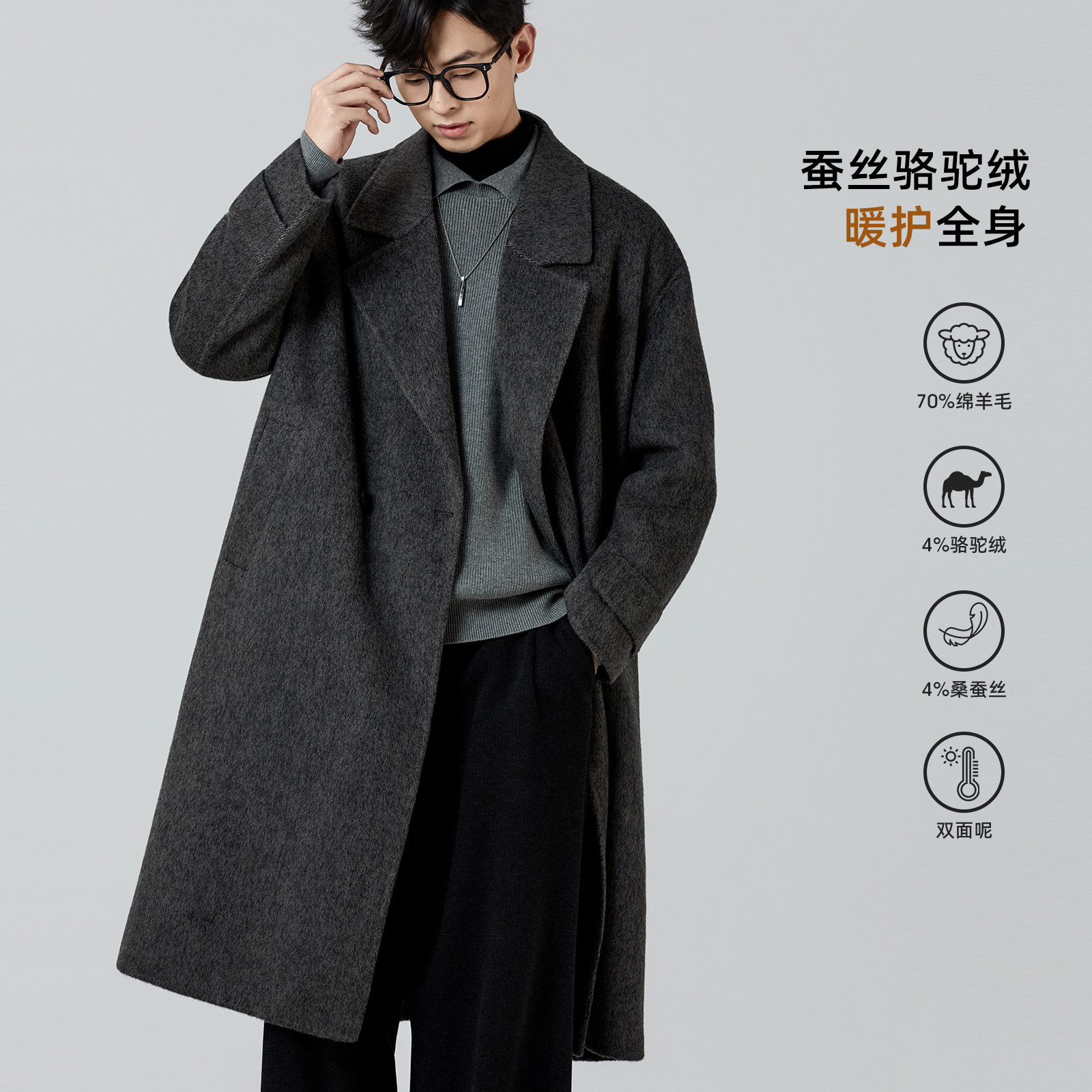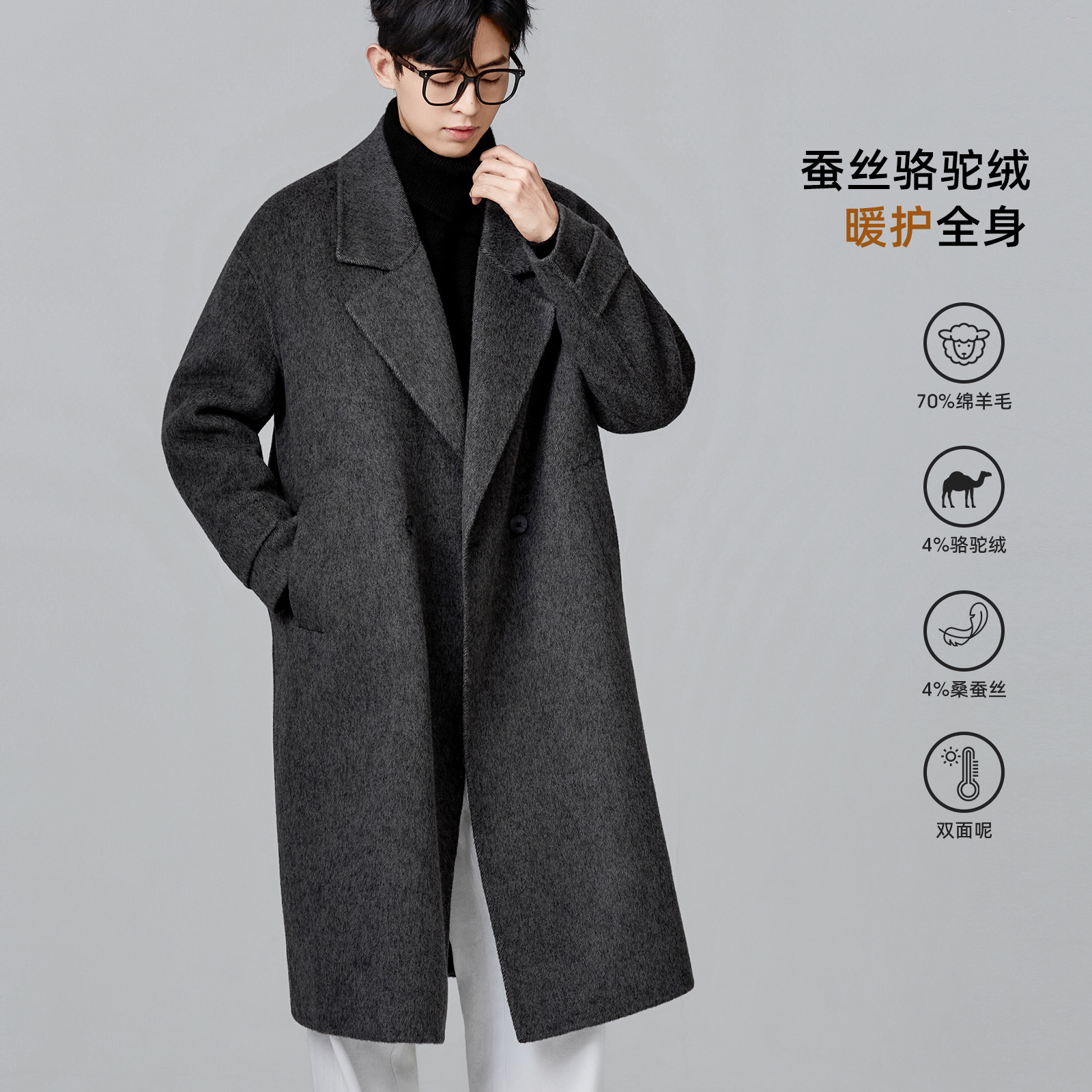 淘宝海上公路蚕丝骆驼绒大衣男士2025新款秋冬季70双面呢羊毛长款外套