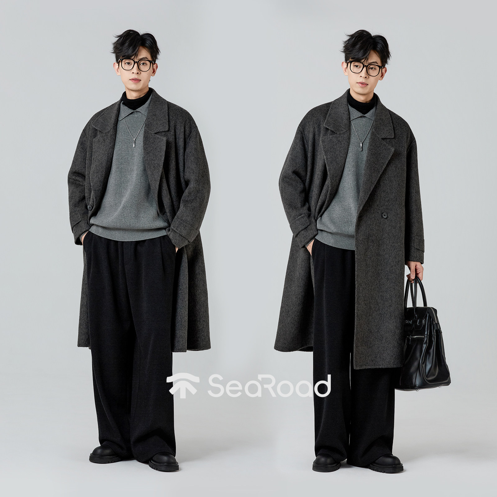 2025年秋冬新款男士长款大衣,融合海上公路灵感与奢华材质,匠心呈现。采用70%双面呢羊毛与珍贵蚕丝、骆驼绒混纺,质地细腻、保暖轻盈,兼具垂坠感与挺括型格。经典长款剪裁,线条流畅,彰显沉稳气质;细节处融入航海元素设计,低调中见品味。双面可穿工艺提升实用性与时尚度,适应多变气候与场合。无论是都市通勤还是休闲出行,皆能展现男士儒雅风度与高端质感。这款大衣不仅是御寒之选,更是秋冬衣橱中的点睛之作,诠释现代男士对品质与风格的极致追求。
