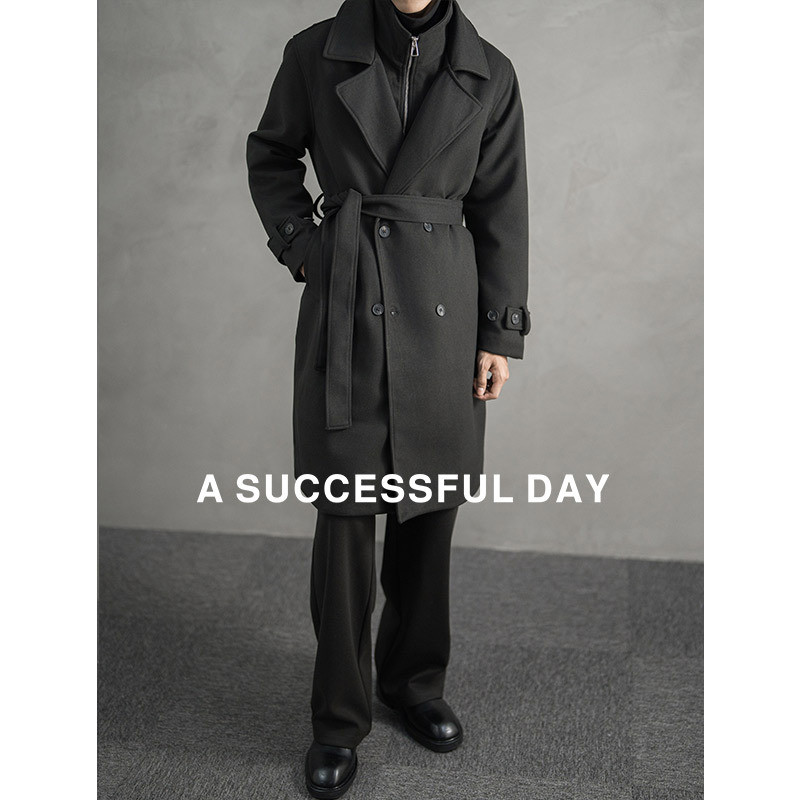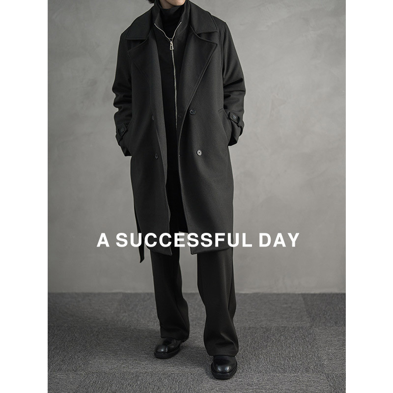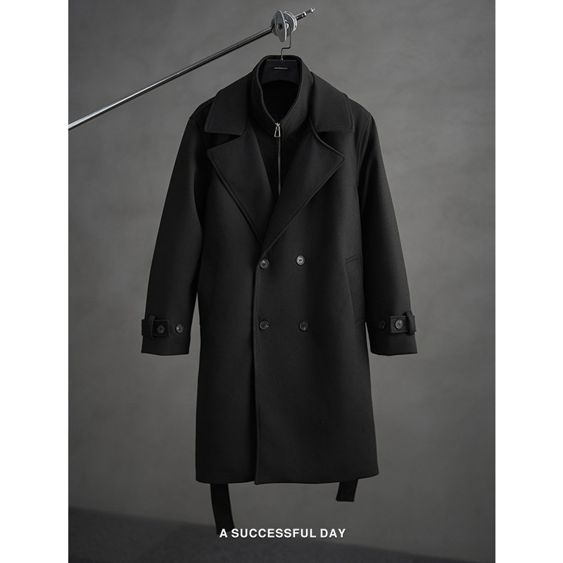 淘宝ASSDY|假两件长款毛呢大衣男士2025冬季新款外套潮双排扣风衣春秋