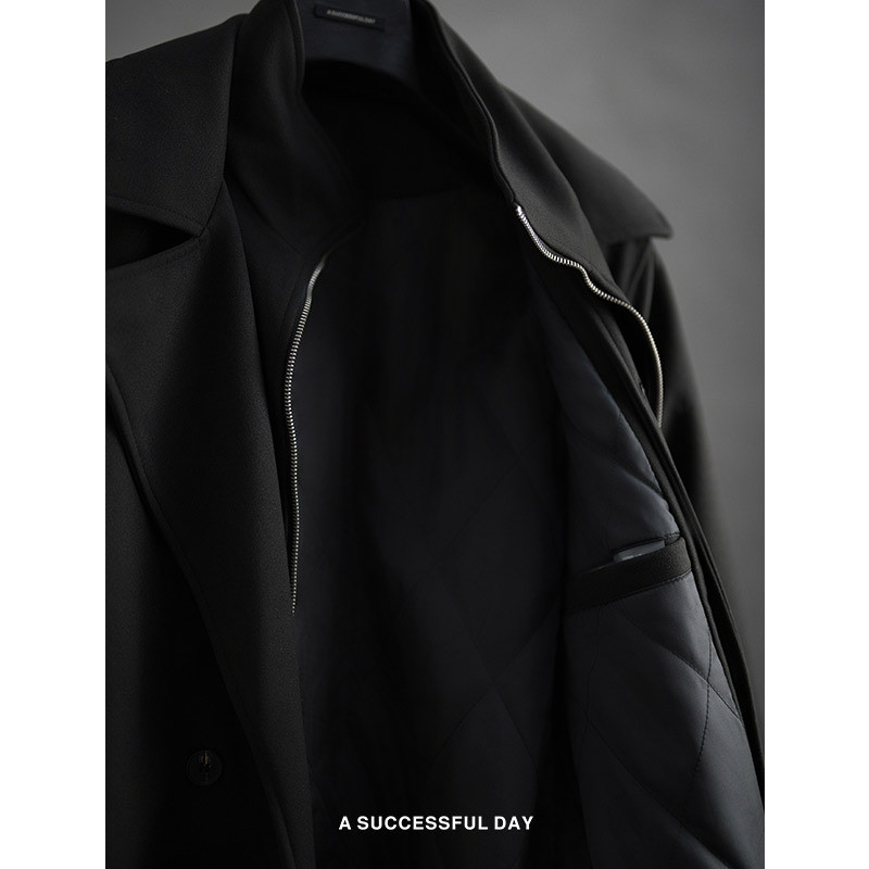 ASSDY 2025冬季新款男士假两件长款毛呢大衣,融合经典与潮流设计,采用优质毛呢面料,挺括保暖,质感出众。创新假两件式剪裁,层次丰富,视觉更显立体时尚。双排扣设计复古大气,搭配长款风衣版型,修身显瘦,彰显男士儒雅气质。适用于秋冬及初春多种场合,通勤、约会皆宜。细节精致,袖口、下摆做工考究,兼顾实用与美观。ASSDY以匠心工艺打造都市型男必备单品,轻松驾驭冬日风度与温度,是追求品质与风格男士的理想之选。