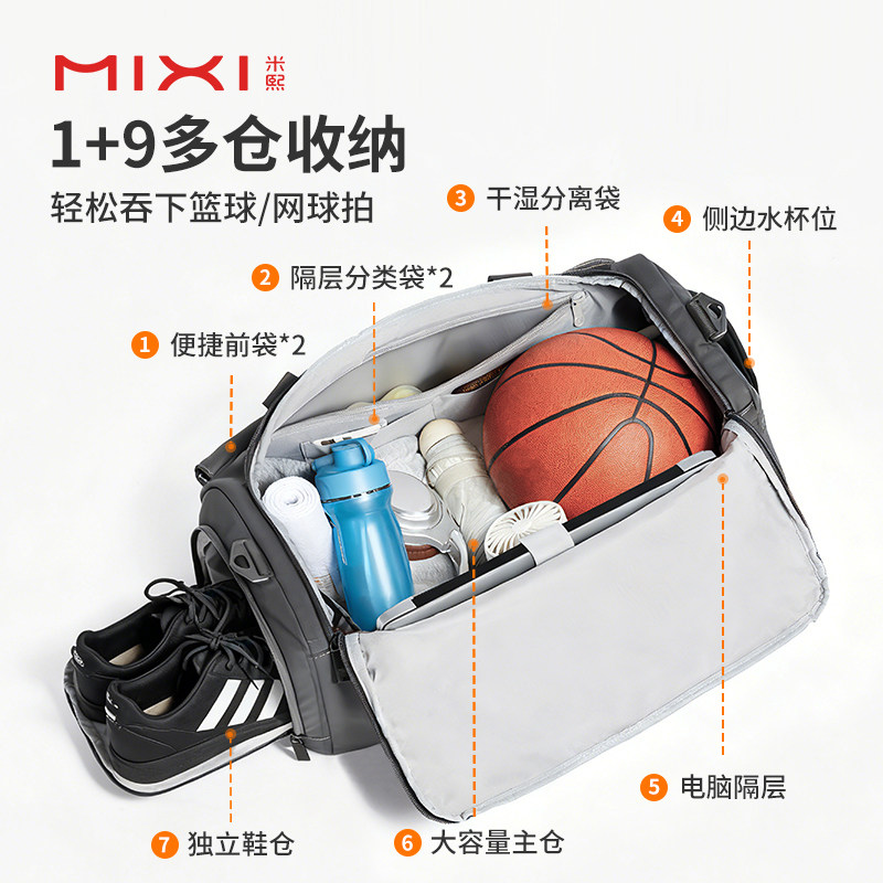 天猫米熙大容量干湿分离健身包女便携短途旅游旅行包行李袋外出手提包