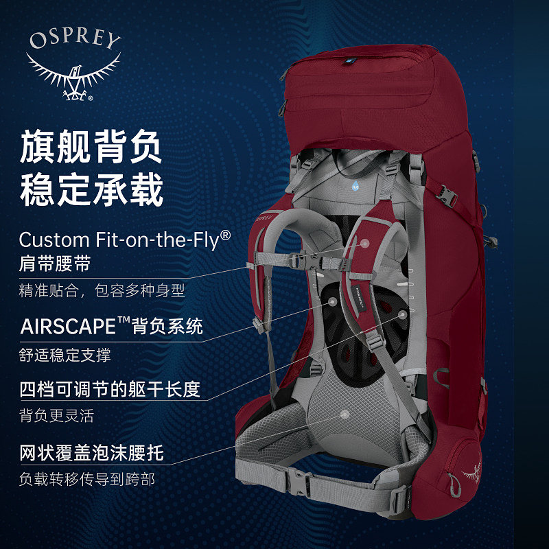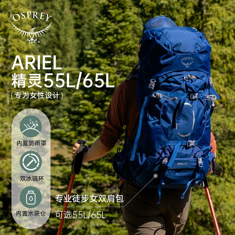 天猫OSPREYAriel精灵户外专业登山旅行徒步探索双肩包大容量多功能女