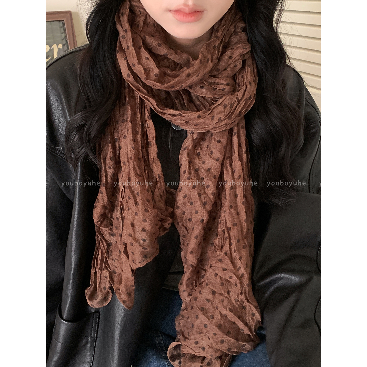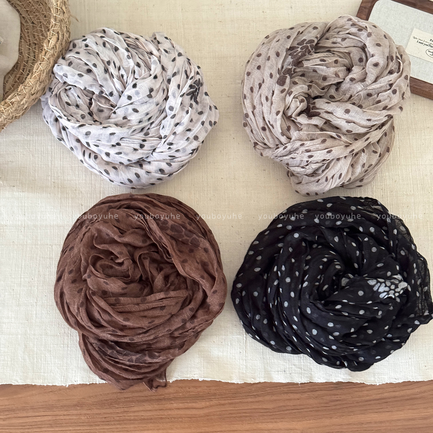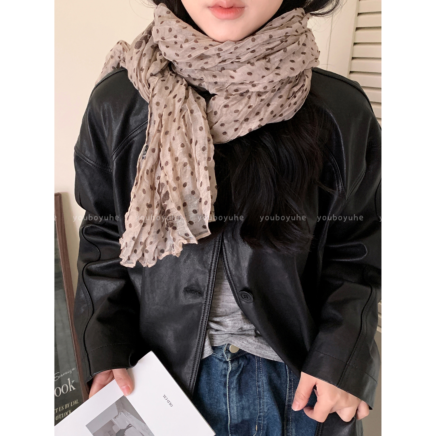 淘小清新波点棉质方巾丝巾女春秋韩版百搭洋气装饰领巾头巾护颈围脖