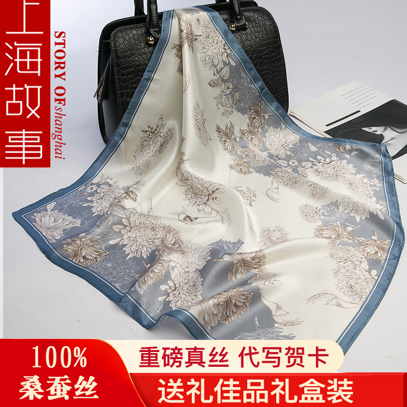 淘宝上海故事真丝丝巾小方巾女秋冬款100%桑蚕丝妈妈围巾职业缎面领巾
