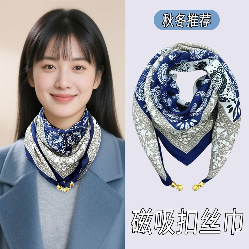 天猫2025新款磁吸扣丝巾女秋冬懒人吊坠薄款方巾护颈围巾围脖时尚百搭