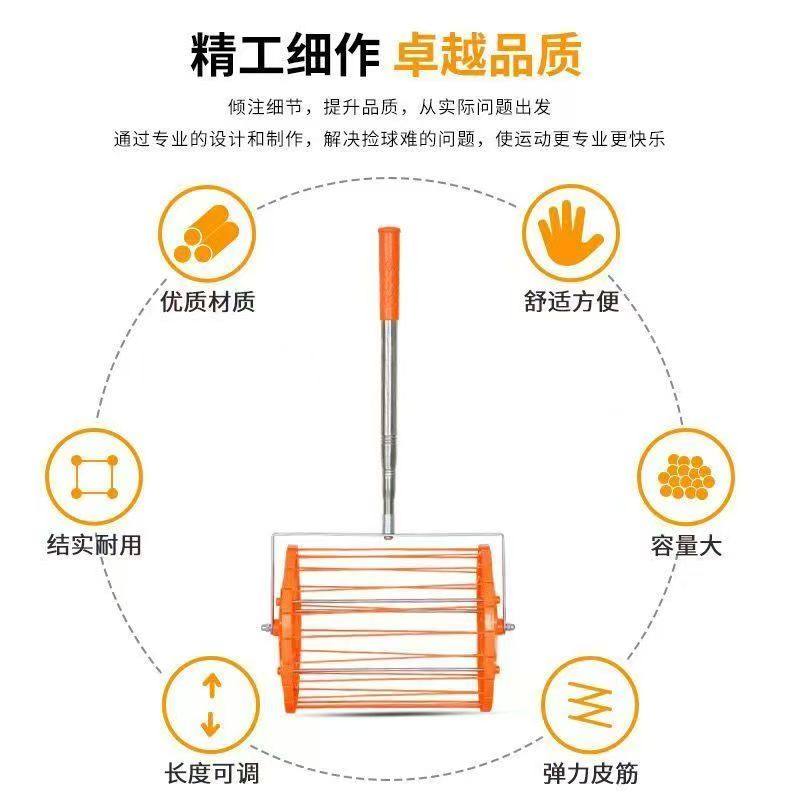 乒乓球捡球器是一款专为乒乓球爱好者设计的便携式拾球神器,采用伸缩杆结构,长度可自由调节,轻松应对不同距离的捡球需求。配备可调节角度的集球网筐,能灵活贴合地面,高效收集散落球体,避免弯腰捡球的烦恼。网筐设计宽大且承重力强,一次可收纳多颗球,大幅提升训练或比赛后的整理效率。整体轻便耐用,收纳后体积小,便于携带和存放,适用于家庭、球馆及户外等多种场景。无论是专业运动员还是业余爱好者,这款捡球器都能让拾球变得轻松省力,是提升打球体验的实用好帮手。