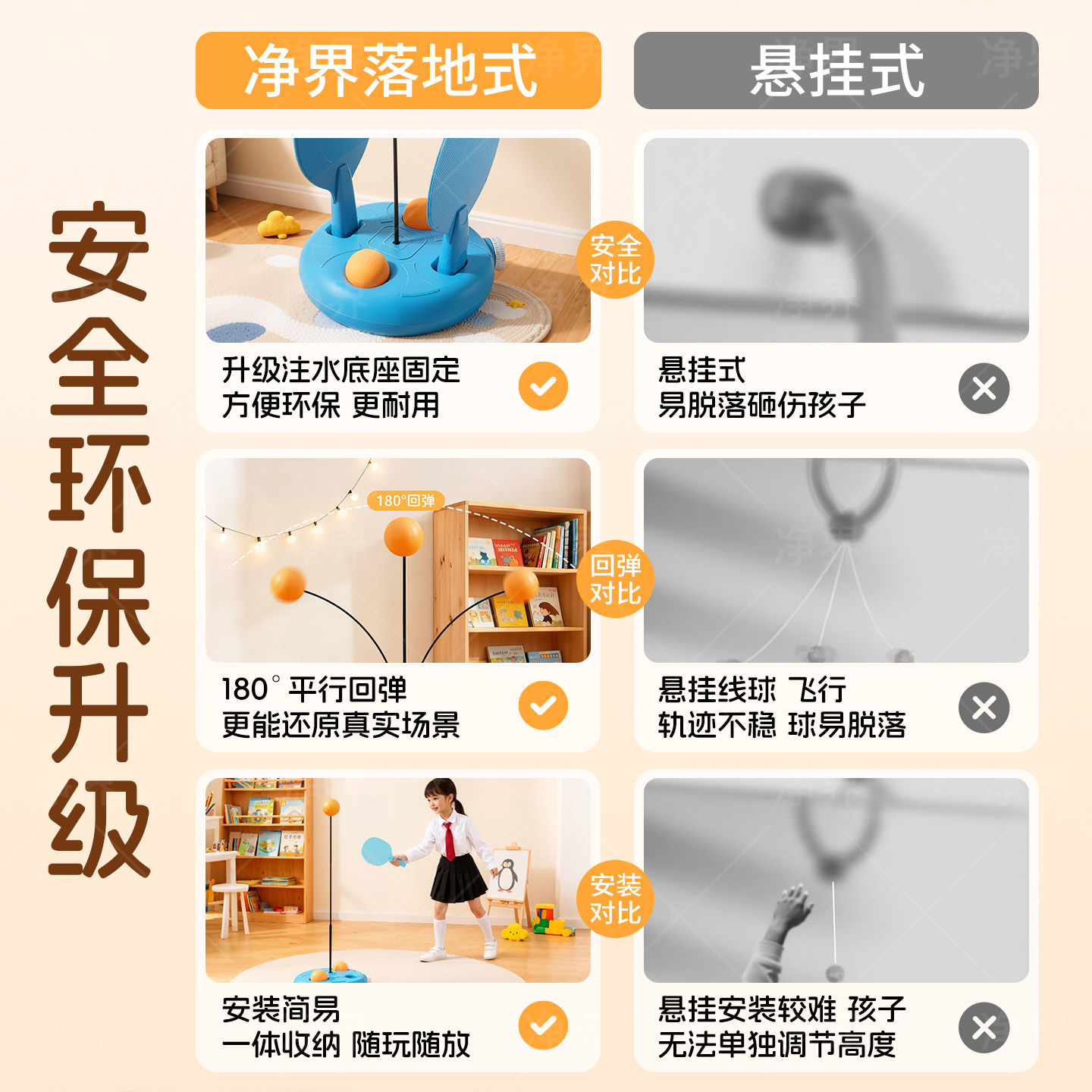天猫儿童乒乓球底座训练器不倒翁固定单双人对打训练乒乓球自练反弹器