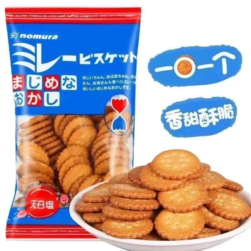 淘宝5袋日本进口野村天日盐饼干淡盐味米勒小圆饼网红休闲年货小零食
