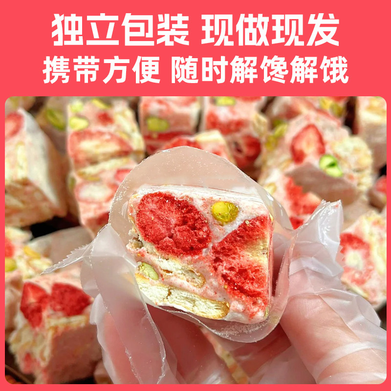 草莓羊奶芙雪花酥,是一款集颜值与美味于一身的网红爆款零食。外层酥软绵密,内里包裹着香脆坚果与Q弹牛轧棉花糖,层次丰富,入口即化。精选优质羊奶与新鲜草莓粉调制,奶香浓郁,果味清新,甜而不腻。雪花酥表面轻撒糖霜,如雪花点缀,颜值超高,深受年轻人喜爱。无论是作为下午茶点心、追剧零食,还是送礼佳品,都令人爱不释手。融合传统工艺与现代口感,草莓羊奶芙雪花酥已成为社交平台上的热门小吃,一口下去,幸福感爆棚,是追求精致生活的必备美味。