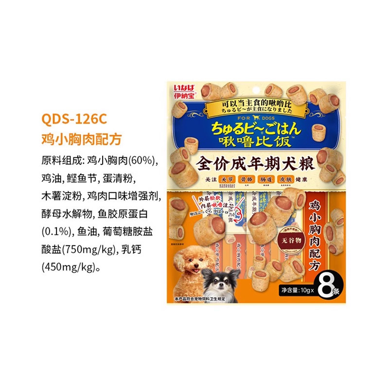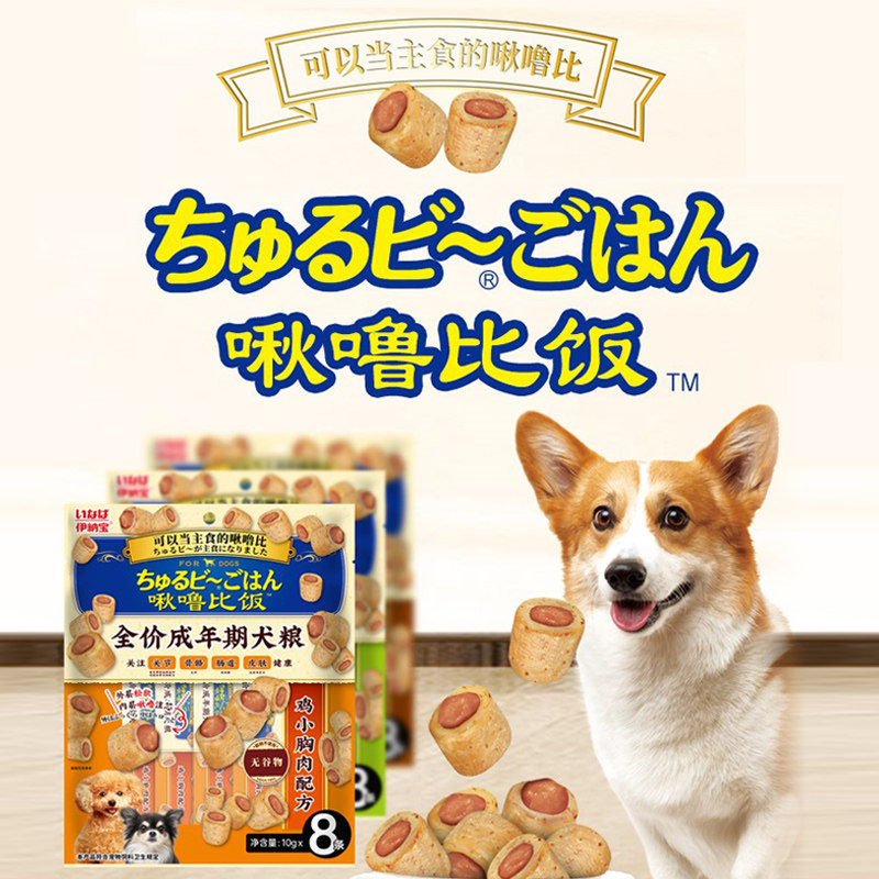 天猫伊纳宝啾噜比饭狗饼干宠物狗狗零食营养磨牙洁牙狗条16支夹心卷