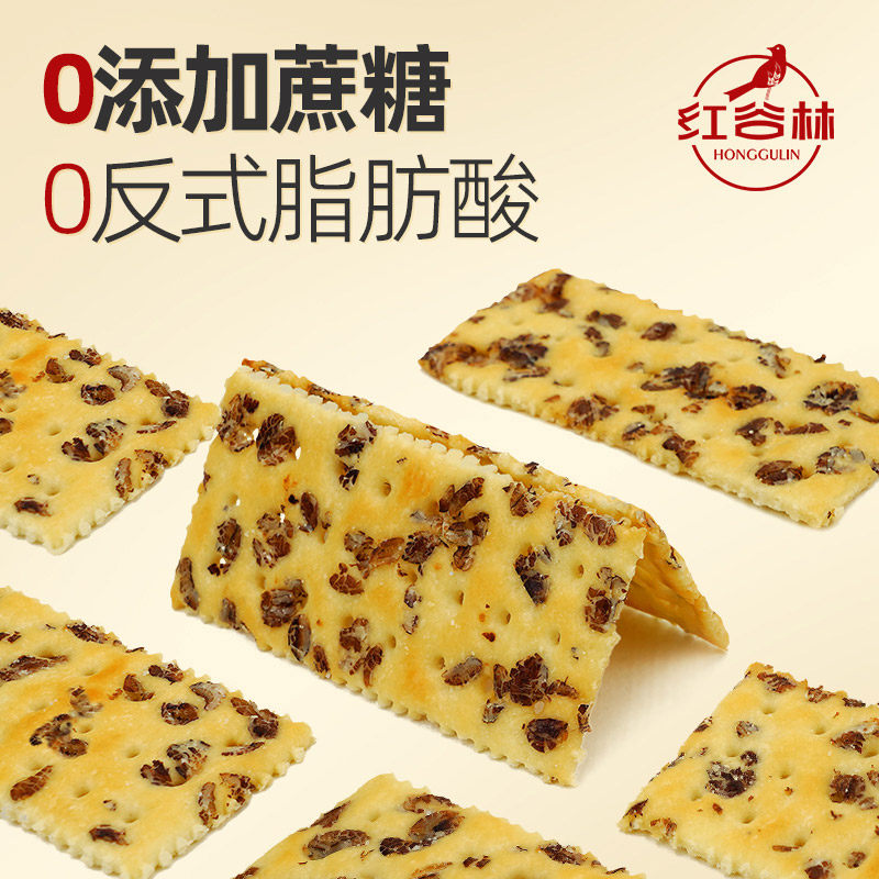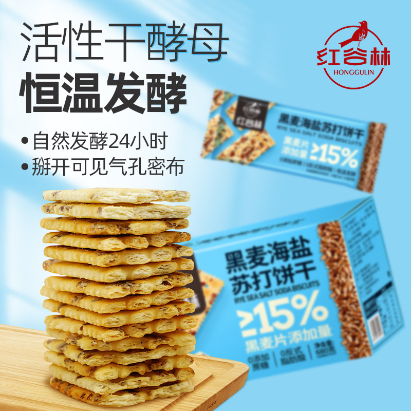 天猫【百亿补贴】红谷林黑麦海盐苏打饼干680g*1盒早代餐粗粮小零食