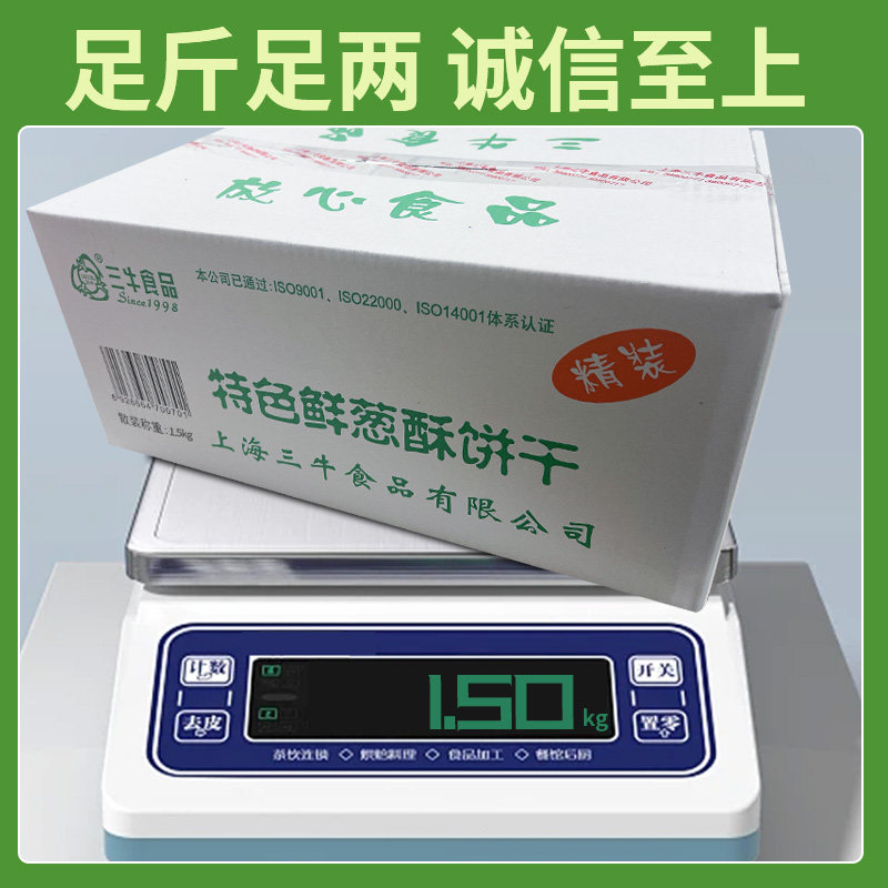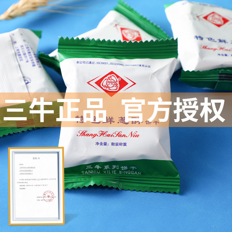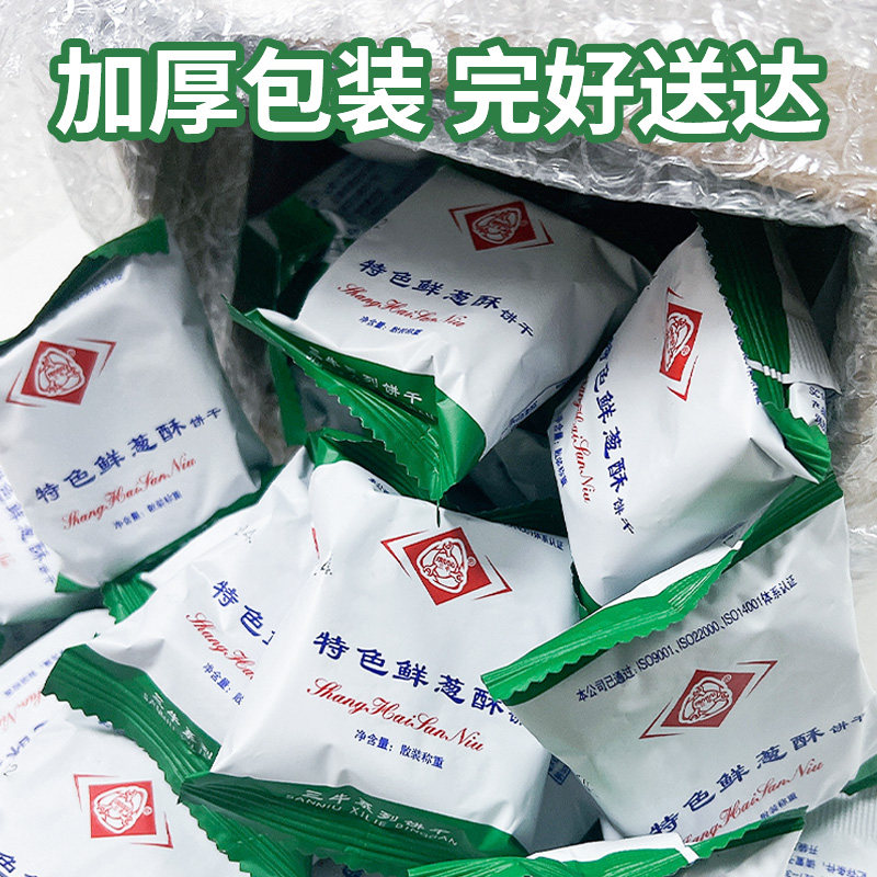 天猫上海老牌三牛饼干葱花薄脆葱香味特色鲜葱酥饼干整箱批发咸味零食