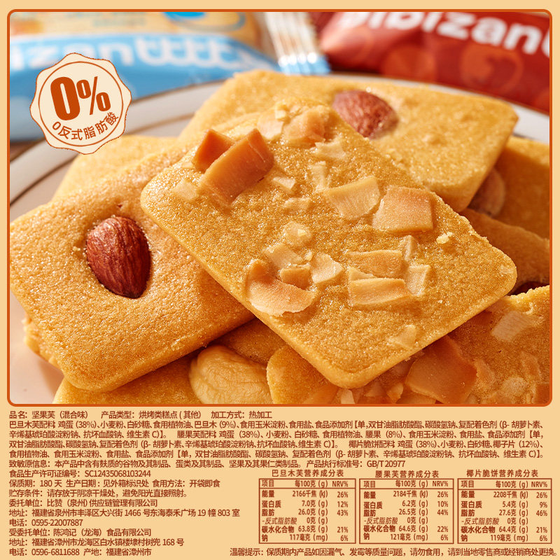 天猫比比赞坚果芙饼干曲奇巴旦木腰果椰片脆饼糕点小零食小吃休闲食品