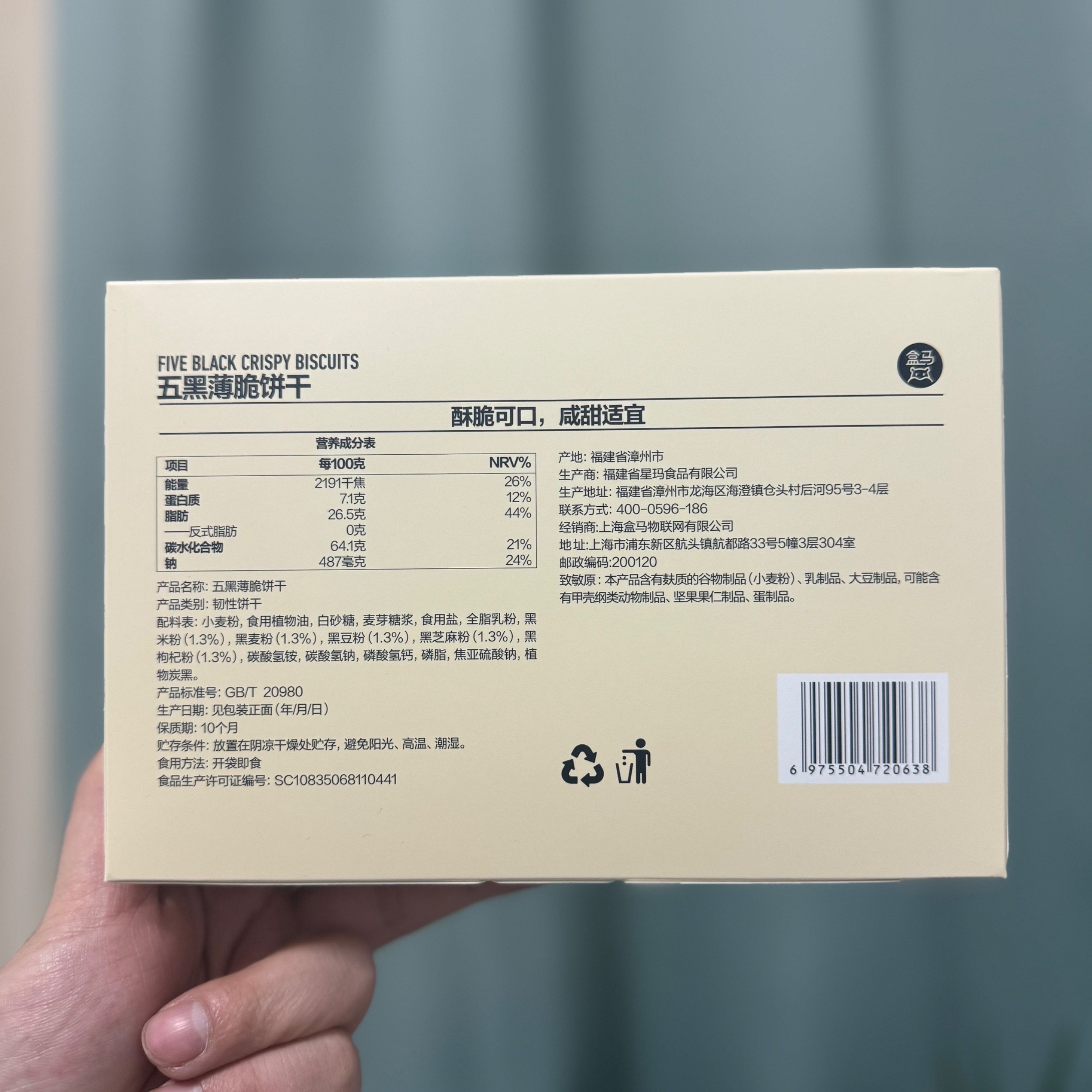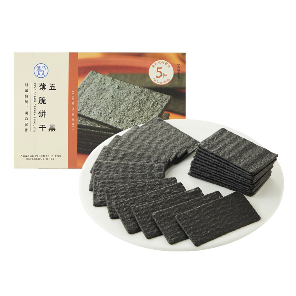 淘宝盒马五黑薄脆饼干240g含膳食纤维黑米粉黑豆粉黑麦粉黑芝麻黑枸杞