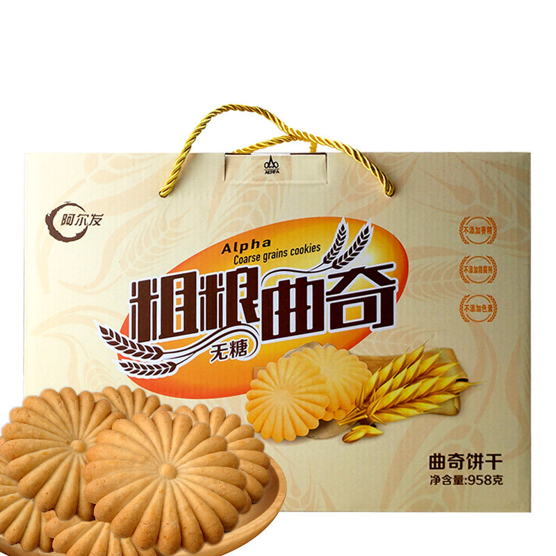 淘宝阿尔发无糖食品粗粮曲奇饼干中老年糖友木糖醇零食礼盒阿尔法包邮