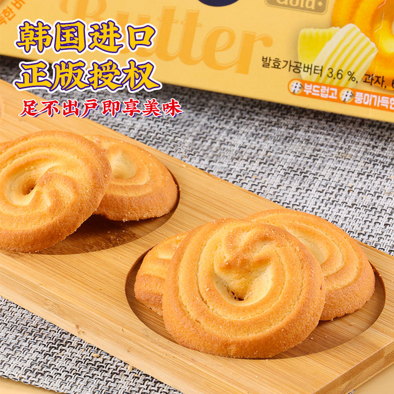 【自营】韩国海太黄油曲奇饼干,精选优质原料,源自韩国进口工艺,每块65g精致小包装,方便携带与分享。采用浓郁黄油与细腻奶油精心调制,口感酥脆香甜,入口即化,奶香四溢,带来纯正的韩式甜点体验。无人工色素与防腐剂,健康安心。无论是午后茶点、休闲零食,还是馈赠亲友,都是理想之选。海太品牌凭借多年制饼经验,确保每一块曲奇都保持高品质与稳定口感。现由平台自营直供,品质有保障,物流快速,让您轻松享受来自韩国的甜蜜滋味。一口酥脆,满心幸福,海太黄油曲奇,唤醒你的味蕾记忆。