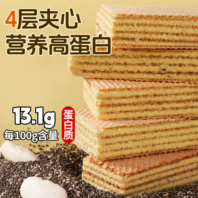 天猫甄磨坊白芸豆奇亚籽威化夹心饼干饱腹代餐蛋白能量棒解馋休闲零食