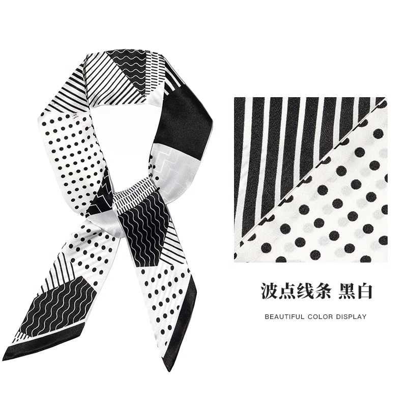 商品介绍:这款真丝飘带丝巾,采用优质桑蚕丝材质,触感柔软舒适。设计复古百搭,长条形状,既可用于系脖,又可绑包、发带和腰带。是送给妈妈或闺蜜的绝佳礼物。丝巾色泽光亮,图案精美,彰显高贵气质。无论是日常搭配还是特殊场合,都能展现出优雅的风采。真丝材质保证了舒适耐用的同时,还具有独特的透气性能。这款丝巾是您时尚与品味的完美呈现,赠送亲友,定能传递深情厚意。