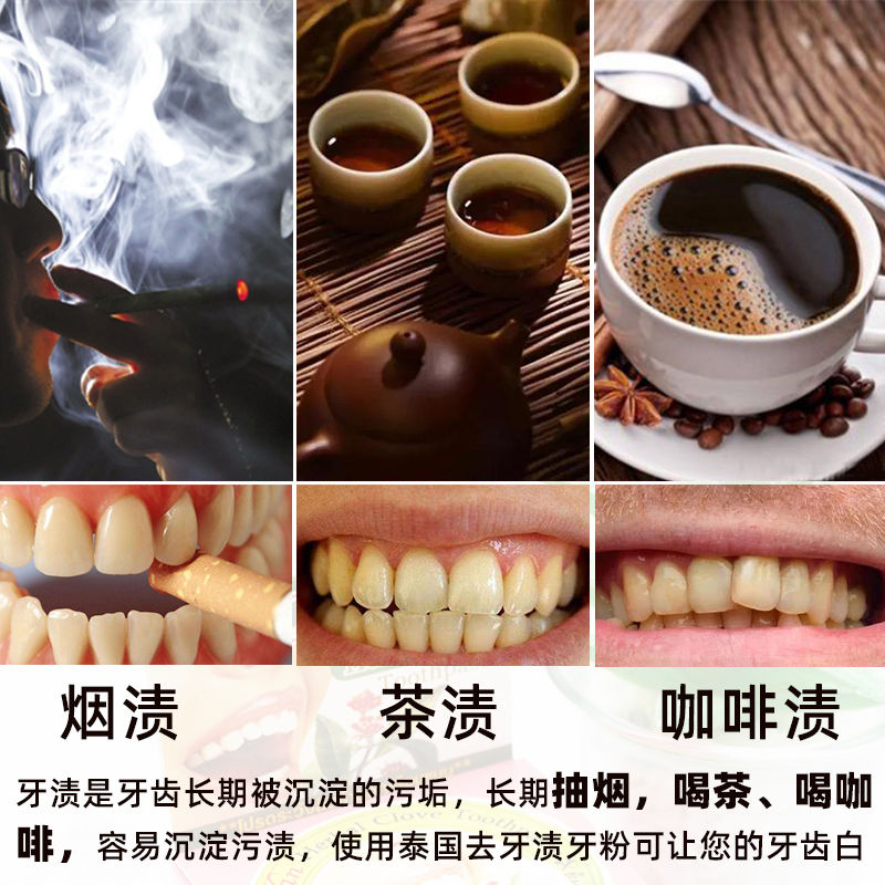 淘泰国原装green herb牙粉牙膏 美白牙齿 洁白除牙石烟牙茶渍黑黄渍