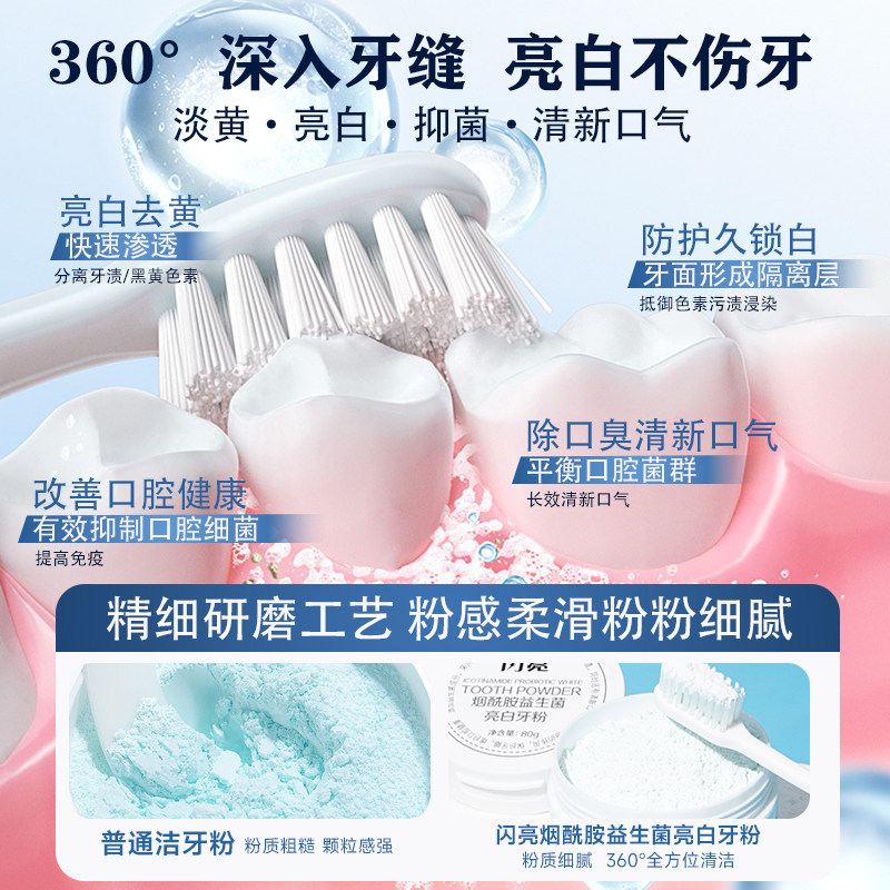 闪亮洁牙粉去黄洗美白黄牙口臭白牙渍垢牙石益生菌正品官方旗舰店