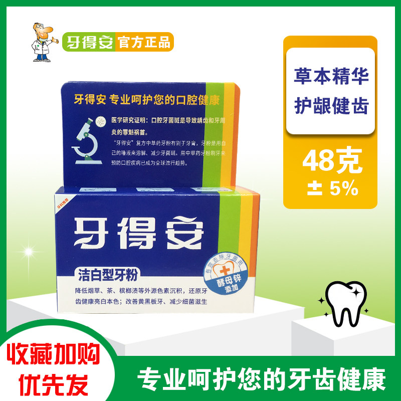 淘宝牙得安洁白型牙粉48g送健齿5袋 牙齿亮白减黄牙渍牙垢牙结石清新