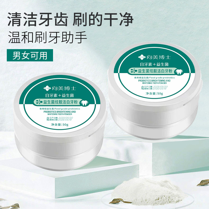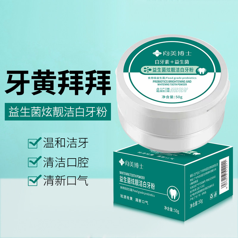 天猫向美博士益生菌牙粉去黄去口臭美白清洁污垢牙齿黄牙