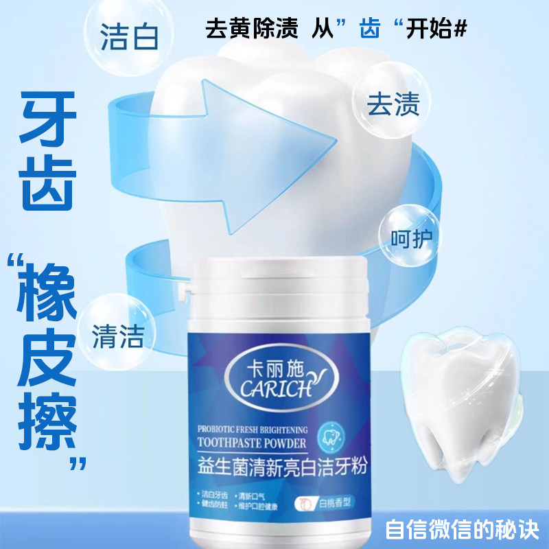 闪亮洁牙粉去黄洗美白黄牙口臭白牙渍垢牙石益生菌正品官方旗舰店