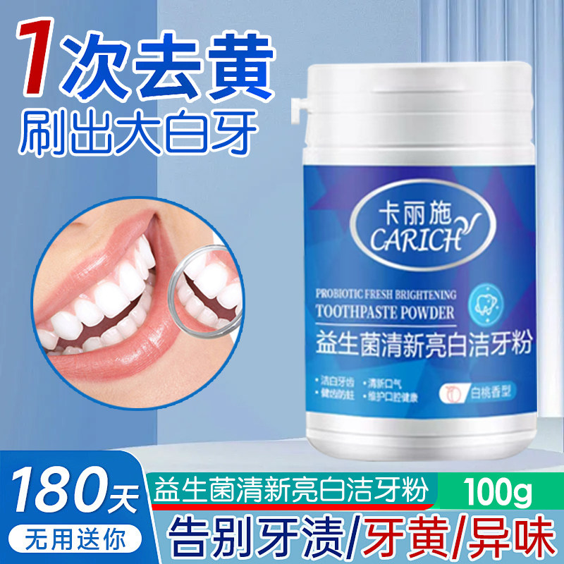 天闪亮洁牙粉去黄洗美白黄牙口臭白牙渍垢牙石益生菌正品官方旗舰店