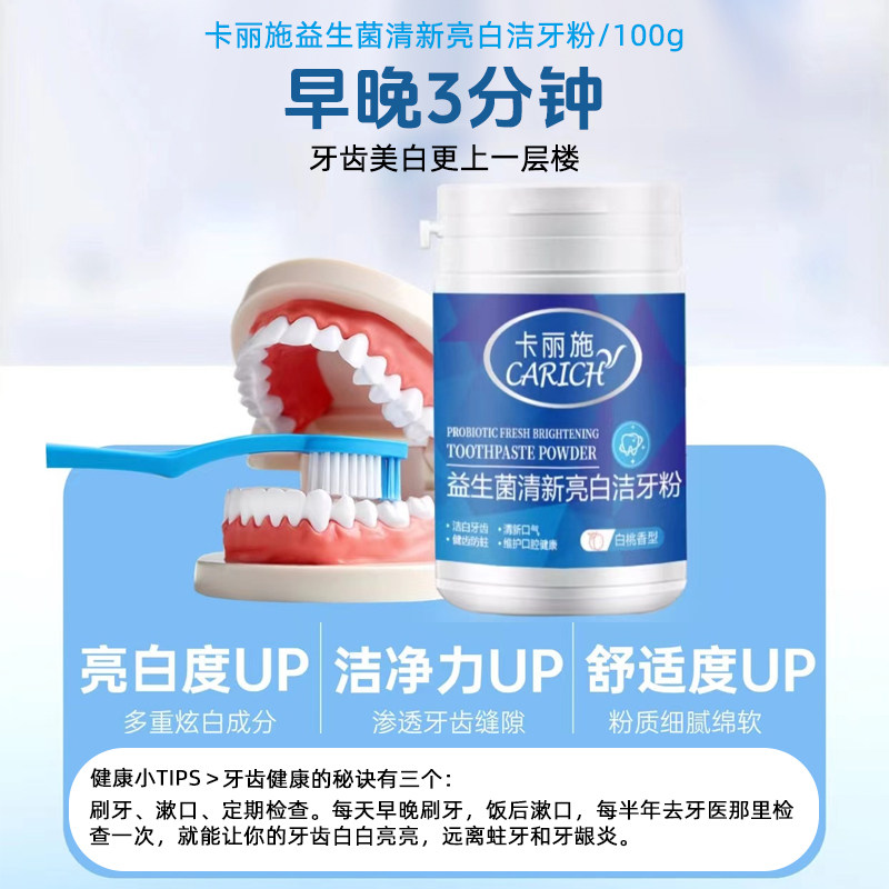 淘宝绿叶爱生活卡丽施益生菌亮白洁牙粉去黄去渍清新口气改善异味100g