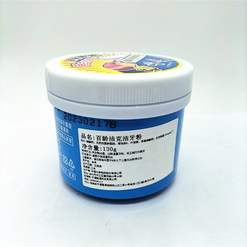 包邮纯台湾版本台湾百龄洁克亮白洁牙粉130G,源自台湾经典口腔护理品牌,采用天然矿物盐与植物精华精制而成,温和去除牙渍,有效亮白牙齿。不含氟化物与人工色素,适合敏感人群使用。细腻粉末质地,深入清洁牙缝与牙龈边缘,帮助减少牙菌斑,清新口气持久。坚持使用可改善烟渍、茶渍等外源性色素沉积,恢复牙齿自然亮泽。包装密封良好,使用方便,130g大容量更耐用。台湾原装进口,品质有保障,是追求健康洁齿人士的理想选择。配合正确刷牙方式,效果更佳,让笑容更加自信迷人。