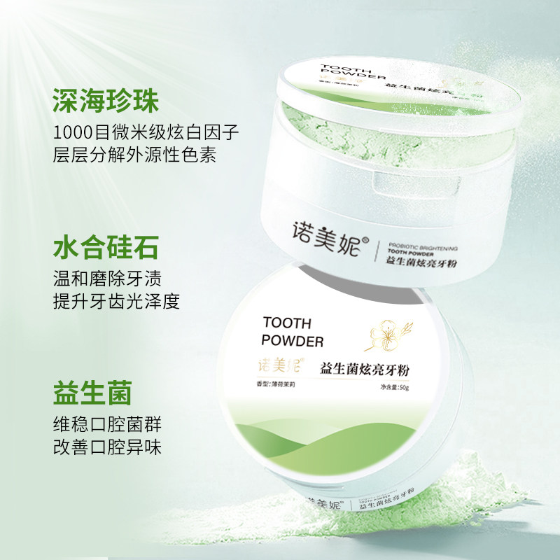 淘宝诺美妮清洁牙齿清爽口感清新口气牙黄口臭益生菌炫亮牙粉