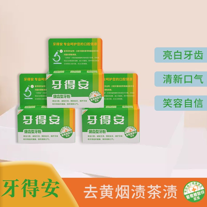 牙得安牙粉健齿型(52g)是一款专为改善口腔健康设计的天然牙粉,适用于牙龈出血、红肿、口臭等问题。其独特配方融合多种草本植物精华,温和清洁牙齿,有效抑制口腔细菌,预防蛀牙,强健牙釉质,帮助固齿护龈。相比传统牙膏,牙粉颗粒细腻,清洁力更强,能深入牙缝,去除牙渍,清新口气。长期使用有助于缓解牙龈炎症,改善口腔微环境,恢复牙龈健康。无氟、无化学添加剂,使用更安全放心。每日早晚刷牙使用,可替代牙膏,为您带来清爽洁净的口腔体验,是追求天然护齿人士的理想选择。
