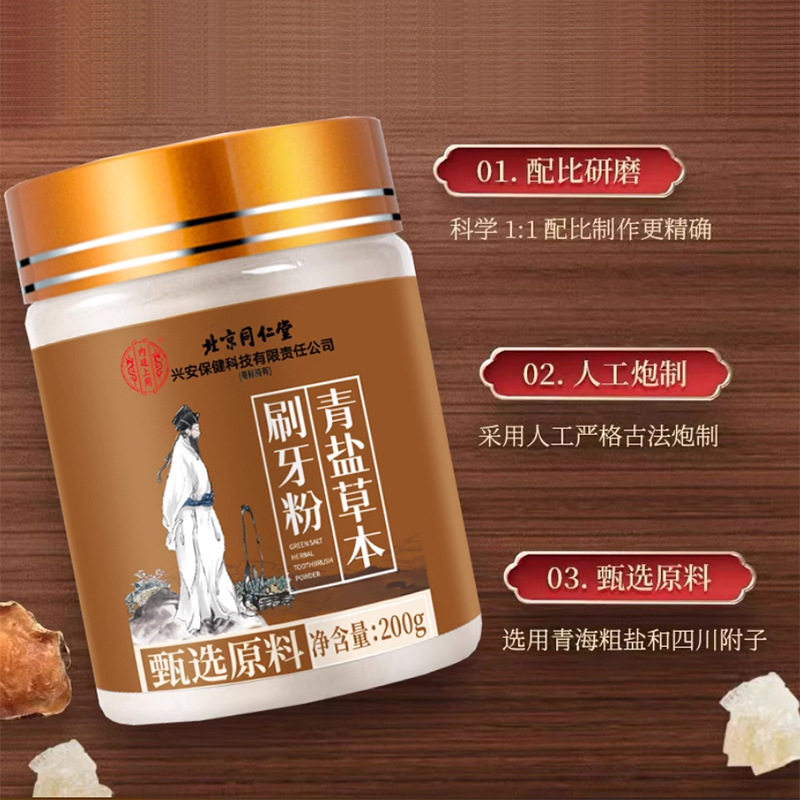 淘宝北京同仁堂内廷上用青盐炮附刷牙粉倪海厦推荐清洁护齿洁白牙粉