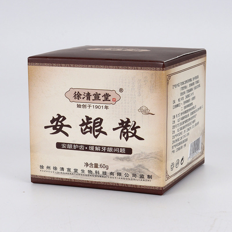 安龈散是一款专为成人设计的草本精华牙粉,融合传统中医智慧与现代口腔护理理念。精选多种天然草本成分,如薄荷、金银花、黄芩等,温和清洁牙齿,有效缓解牙龈肿痛、出血及牙龈萎缩等问题。其细腻粉末质地深入牙缝,去除牙渍,持久清新口气。坚持使用可强健牙龈、固齿护龈,改善口腔微环境,预防牙周疾病。不含氟化物与化学添加剂,安全温和,适合敏感人群日常护理。安龈散以自然之力守护口腔健康,是追求天然护齿人士的理想之选,让您绽放自信笑容。
