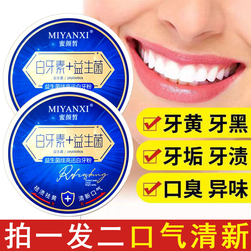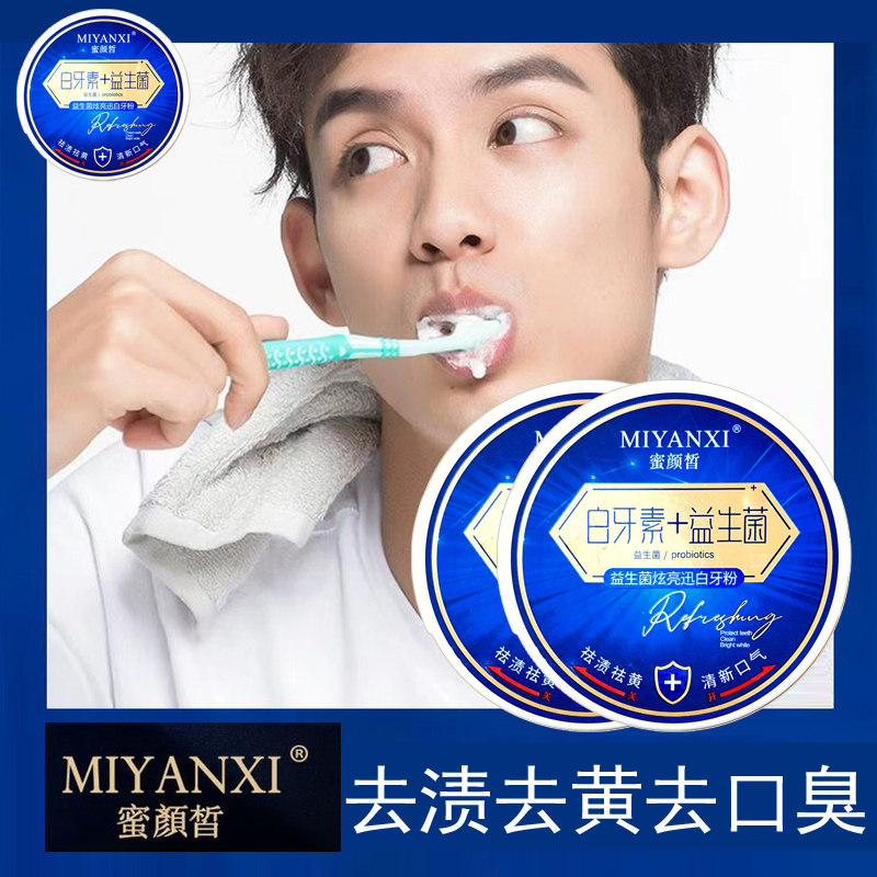 淘宝蜜颜皙益生菌炫亮迅白牙粉去黄洗白减少异味口臭牙渍密颜皙牙粉