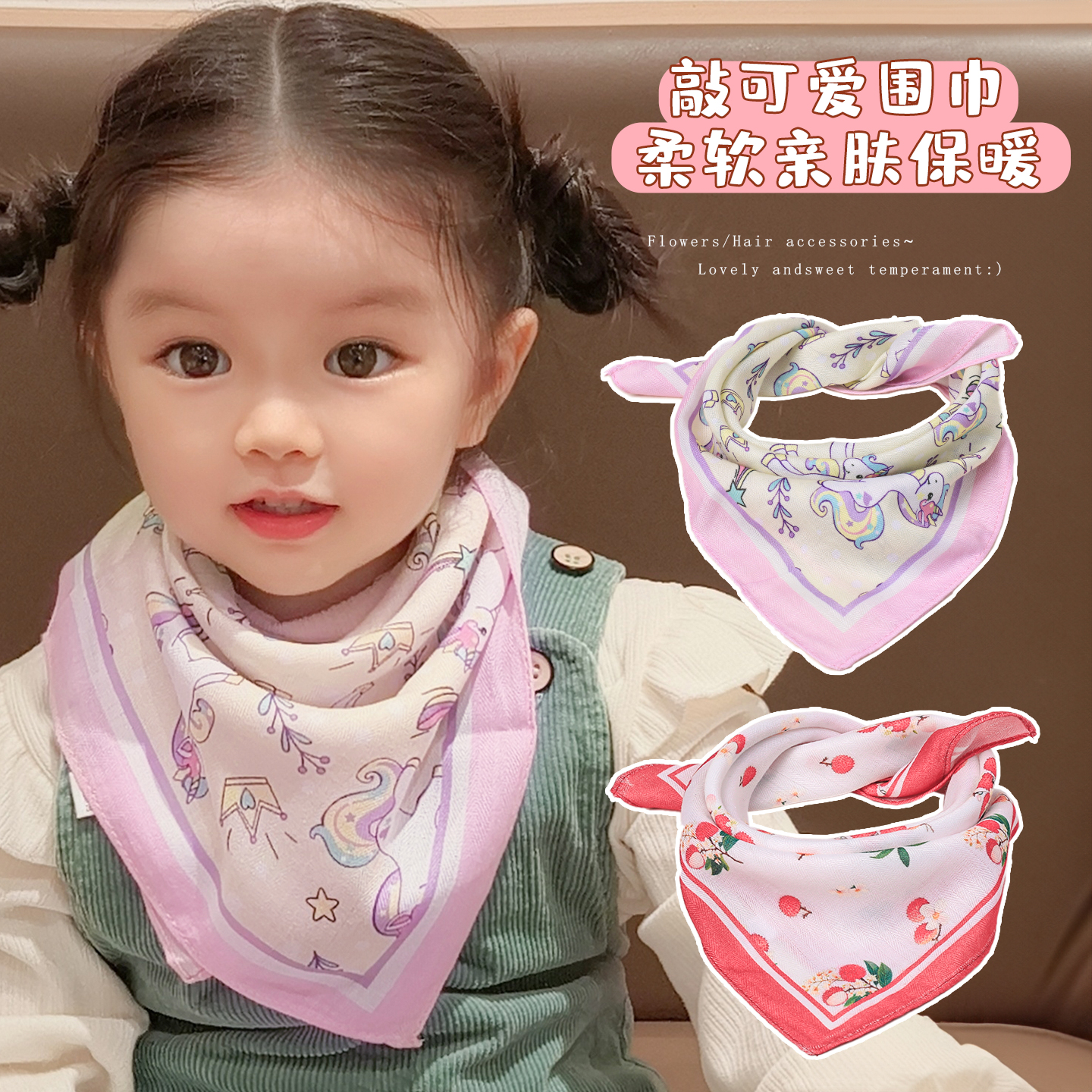天猫小女孩三角巾儿童保暖透气丝巾宝宝秋冬季百搭薄款围脖轻薄波点