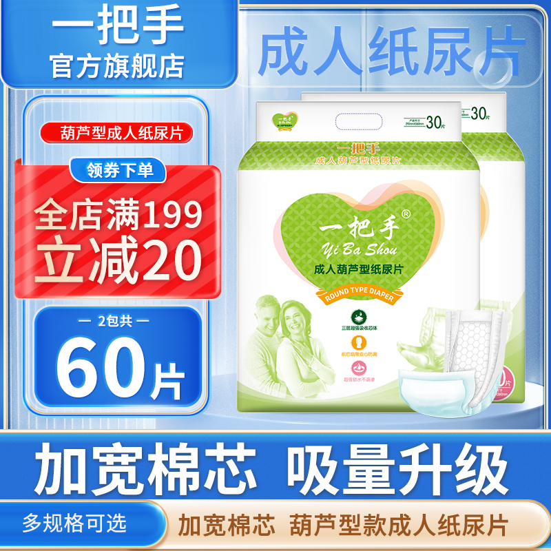 天猫一把手胡芦片成人纸尿片L60片大号 老年人纸尿裤产妇失禁隔尿大码