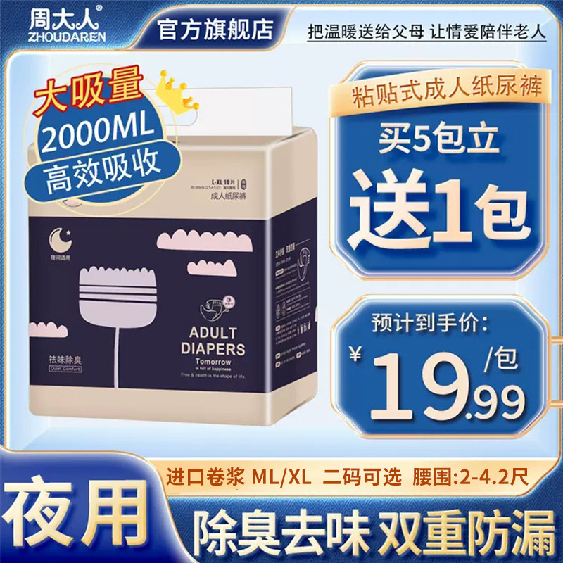 天猫周大人成人纸尿裤夜用老人用加厚中大码男女士裤护理纸尿片尿不湿