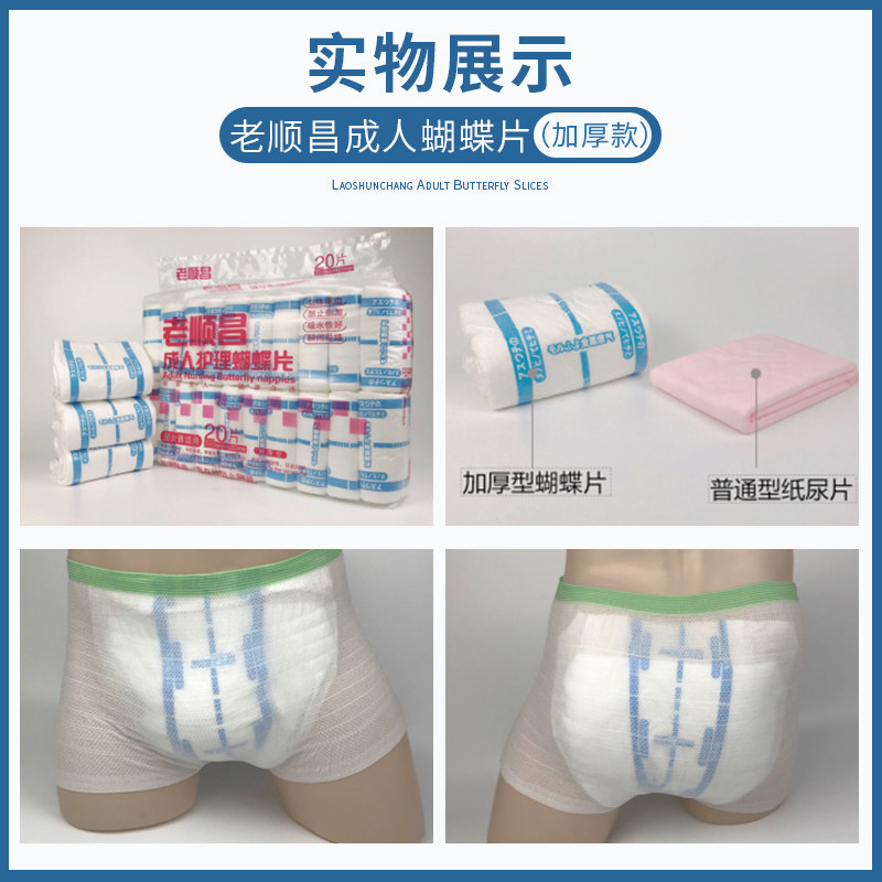 老顺昌蝴蝶片成人纸尿片是一款专为老年人设计的男女通用护理产品,采用大码加大设计,贴合身形,防漏效果优异。其独特的蝴蝶形剪裁,有效提升包裹性和舒适度,适合行动不便或长期卧床的老年用户使用。产品吸收层采用高分子吸水材料,快速锁水,保持表面干爽,减少皮肤刺激和红疹风险。高弹腰围与立体护围双重防漏,夜间使用更安心。大包装经济实惠,满足家庭长期护理需求。老顺昌蝴蝶片以柔软亲肤材质和人性化设计,兼顾舒适与实用,是关爱长者健康、提升生活品质的理想之选。