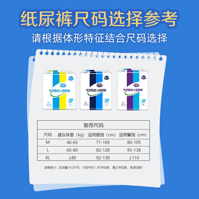 淘宝千芝雅老年人纸尿裤M/L/XL大码成人尿不湿 老人尿片男女非拉拉裤